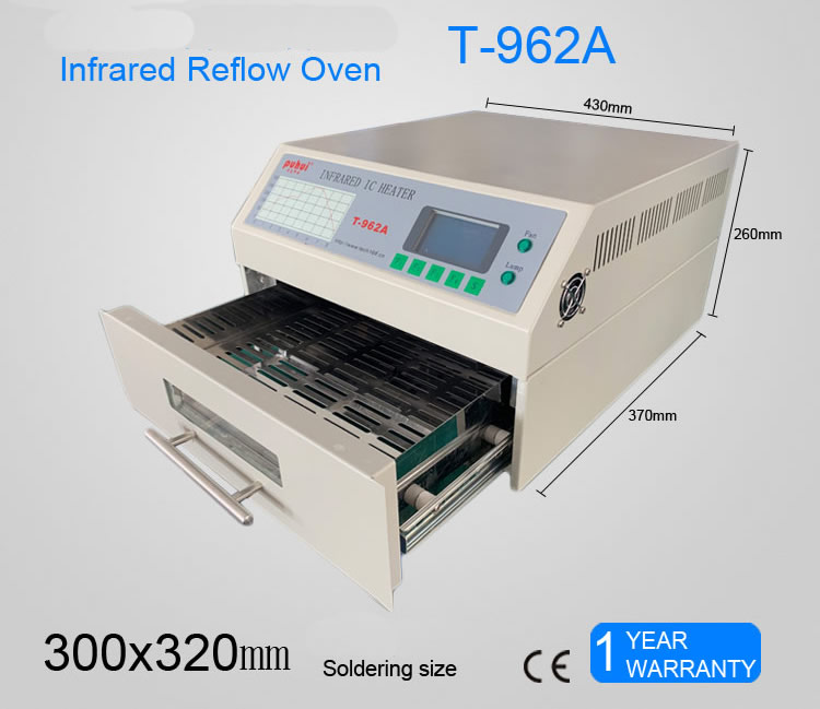 فرن إعادة التدفق T961 الهواء الساخن + IR تسخين 230 * 730mm فرن اللحام